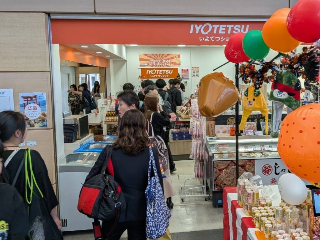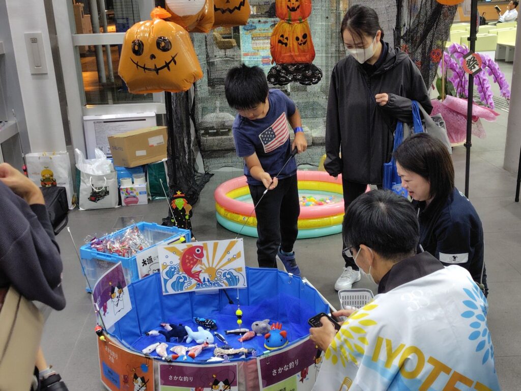 いよてつショップもその日に合わせ、1,500円以上お買い上げでガチャ抽選や「トリック オア トリート!」の声掛けでお菓子のプレゼント、広島みやげ特設コーナーの設置、愛工房様のボールゼリー試食や「鯛めしおにぎり」50食限定販売、おもちゃすくいや釣りゲームなどを実施し、多数の皆様にお越しいただきました。
